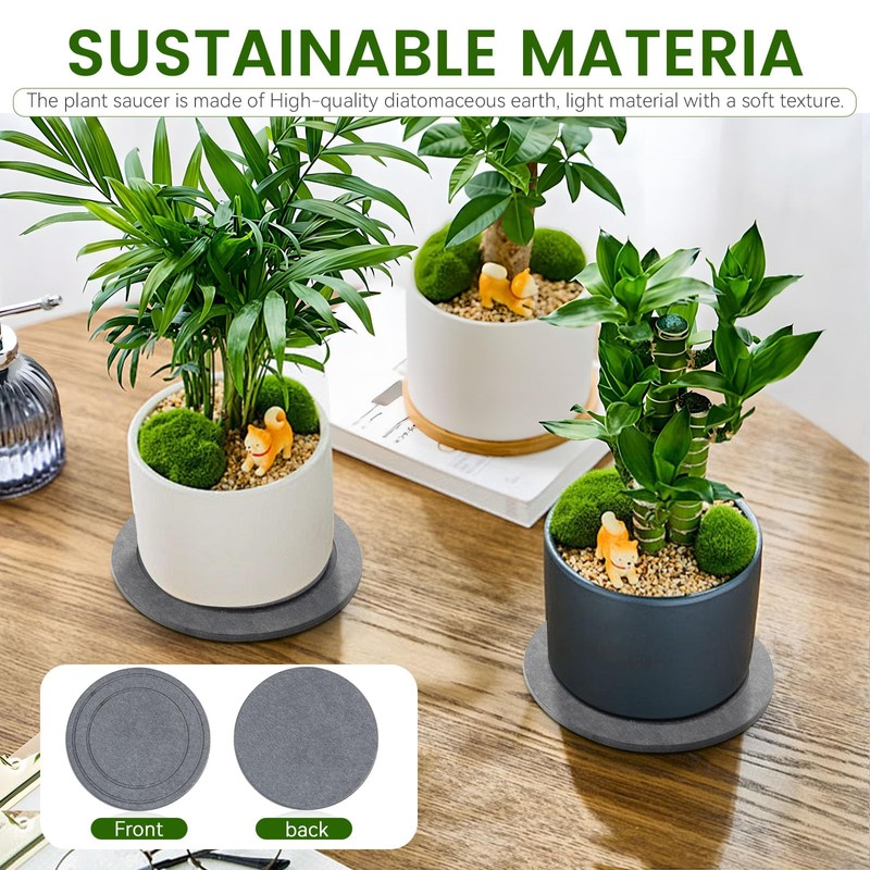 - 【 Instant Water Absorption 】 Diatomite plant tray for pots contains numerous tiny pores that can quickly absorb excess water and evaporate it rapidly. Large plant saucer prevents excess water from causing root rot and keeps counters or floors dry.