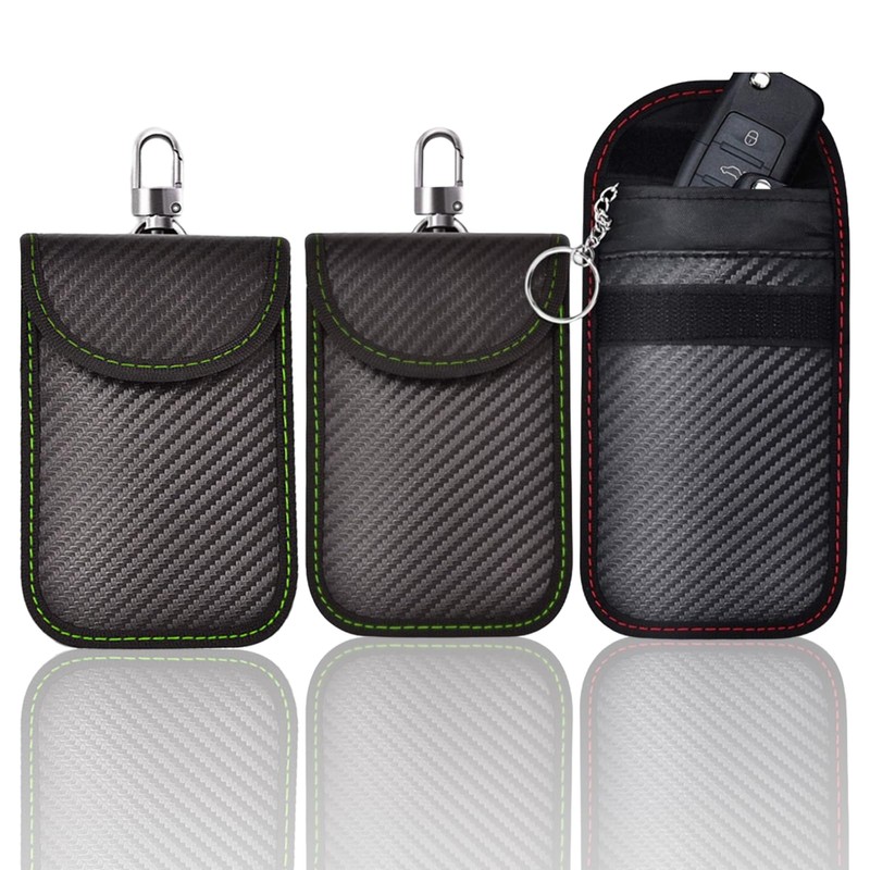 - [Car Key Signal Blocker Pouch] Crafted from high-quality carbon fiber textured material, this car key case offers exceptional durability and superior signal blocking performance. Designed to withstand daily wear and tear, the key pouch provides long-lasting protection for your key fob.