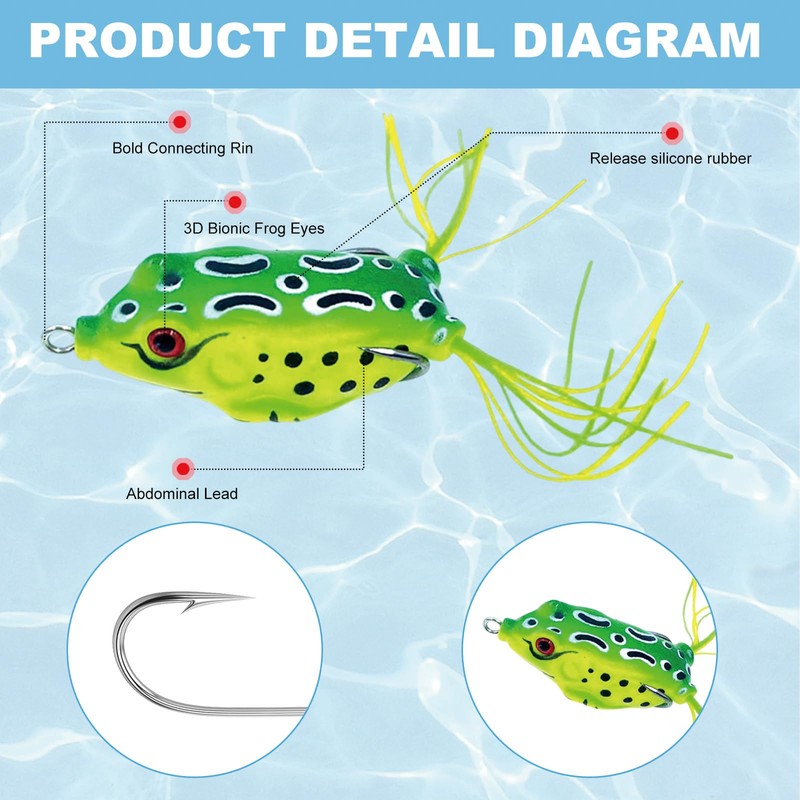- Realistic Modeling: The realistic 3D eyes and real swimming action of frog lures replicate the real frog, which can better attract the fish's attention