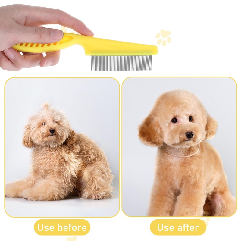 - 【Pet-friendly and design】Dog combs for grooming specially designed to work for cats and dogs with all coat types,which are doubles as a grooming tool to detangle mats around delicate areas.You don't have to worry about being too cautious when using pet hair combs for small animals.The fine-tooth comb is effective in combing without hurting your pet.