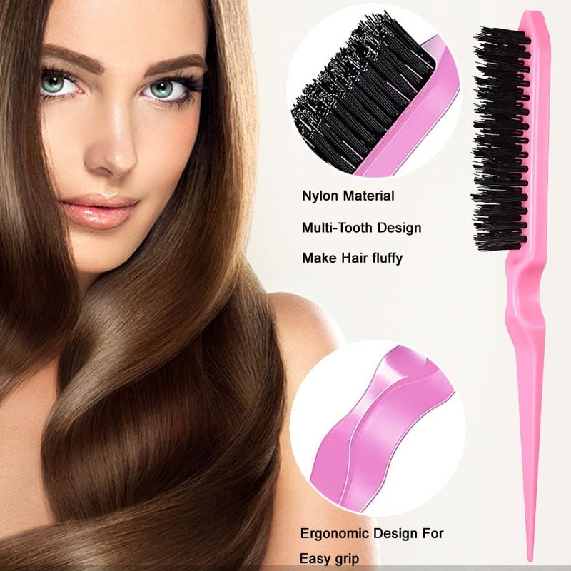 - 【Multi-functiona use】: Teasing hair brush for fuller looking hair, create casual hairstyles and suitable for pointed parts or styling. The double-sided brush can comb the ends, it is a good choice for combing hairline, eyebrows and eyelashes. The rat tail comb is used for hair styling, styling, hair combs, restyling and hair dyeing.