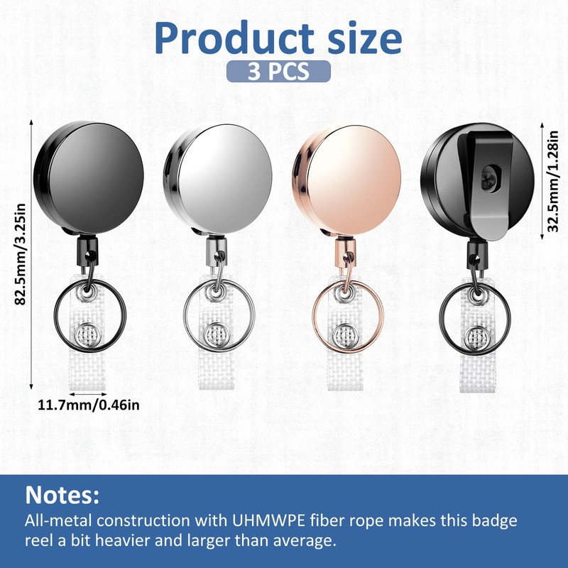 · 3pcs heavy-duty retractable badge reels