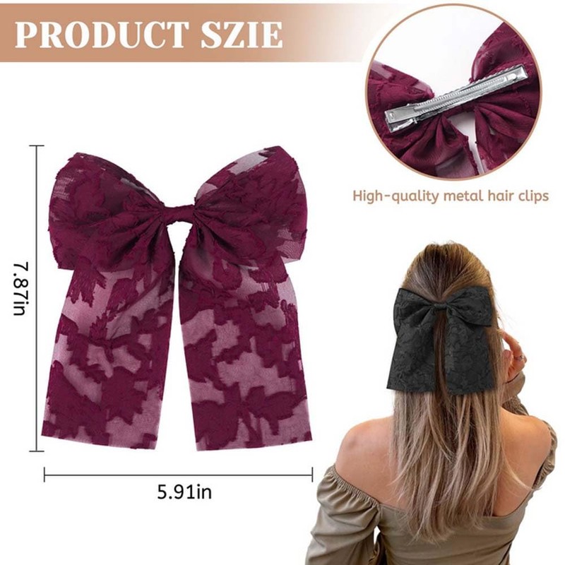 - High Quality Material: The bow claw clips is made of lace embroidery,soft and comfortable to wear.The gauze lace hair clips is made of high quality metal,sturdy and not easy to deform or break,can be used for a long time.