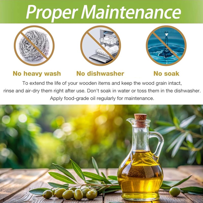 - PRODUCT CARE: For everyday cleaning, simply wipe the surface down with a clean, damp cloth. Dry straight after cleaning. Do not submerse or leave to soak in water. Not Dishwasher Safe. To maintain the appearance of your wood over time olive oil can be re-applied using a dry lint free cloth.