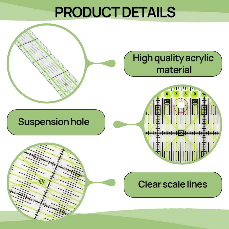 • 【Quilting Rulers】The acrylic material of rulers for quilting and sewing has excellent stain resistance and is easy to clean even if accidentally dirty during use. You can restore the original transparency and clarity of the acrylic ruler set by simply wiping it with a damp cloth.