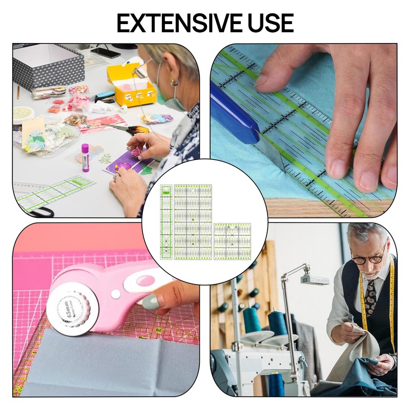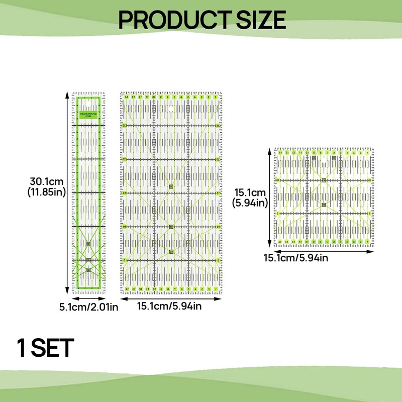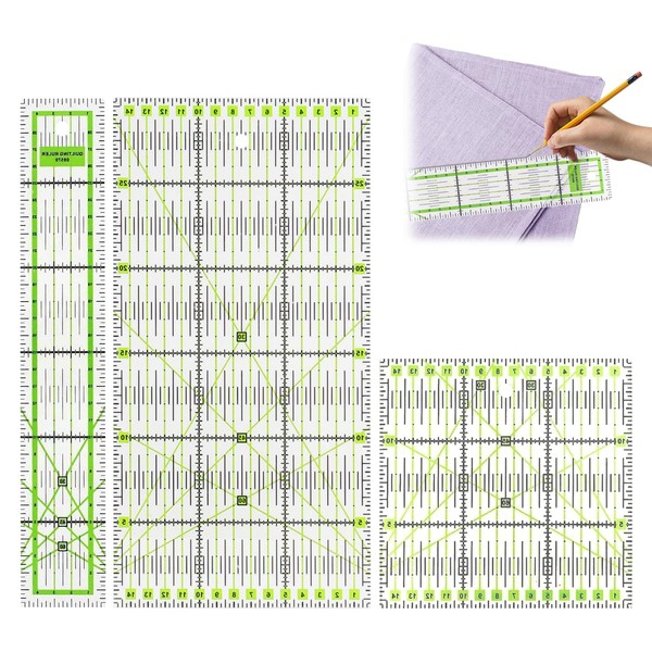 You will get 3 PCS grade ruler set uses clear acrylic, which has high strength, high transparency, and high durability. There are no burrs on the edge and it adheres well to the fabric. It is convenient to cut the fabric without damaging the fabric.