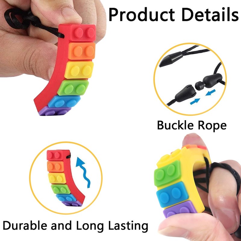 High quality materials: Our block chew toys designed for children with autism are chewable and made of high-quality food grade silicone material. Exquisite craftsmanship, not only rich and unique colors, but also very durable, can withstand the friction and pulling of daily wear, making it a fashionable toy for children.