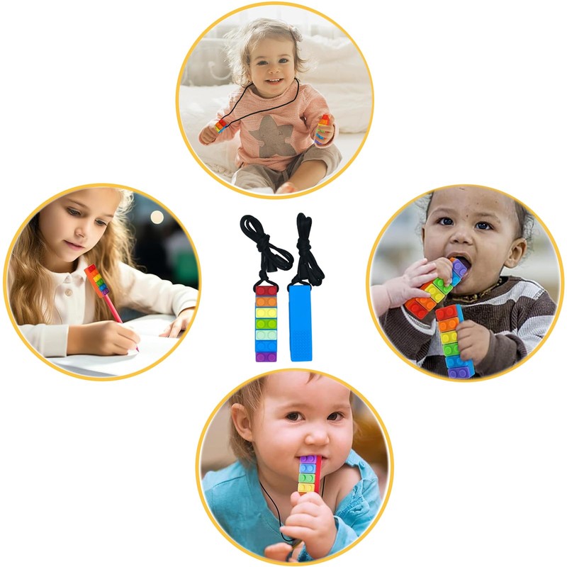 - High Quality Materials: The chew toys for autistic children we designed for children is chewable and made of high-quality food grade silicone material. With exquisite craftsmanship, it not only has rich and unique colors, but also is very durable and can withstand the friction and pulling of daily wear, making it a fashionable toy for children.