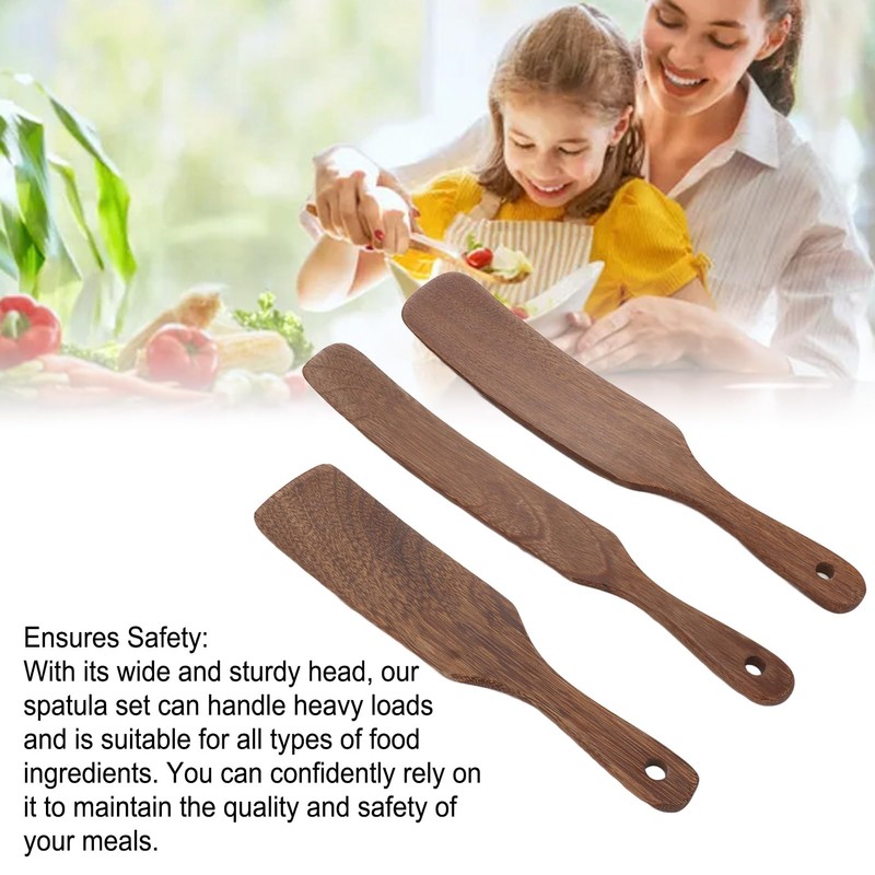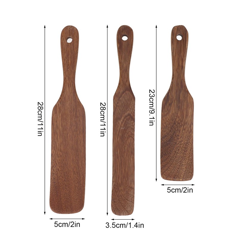 • 【High-quality materials】This set of three wooden spatulas is made of teak, which is known for its sturdiness and practicality. The teak material ensures that these spatulas have a long life, making them a reliable addition to your kitchen tools.