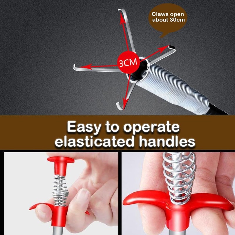 - Good elasticity: when the water pipe is clogged, the telescopic pliers can penetrate the water pipe due to their flexible and soft properties and remove the blockage. Four claws, easy to grip items, easy operation, not easy to fall off!