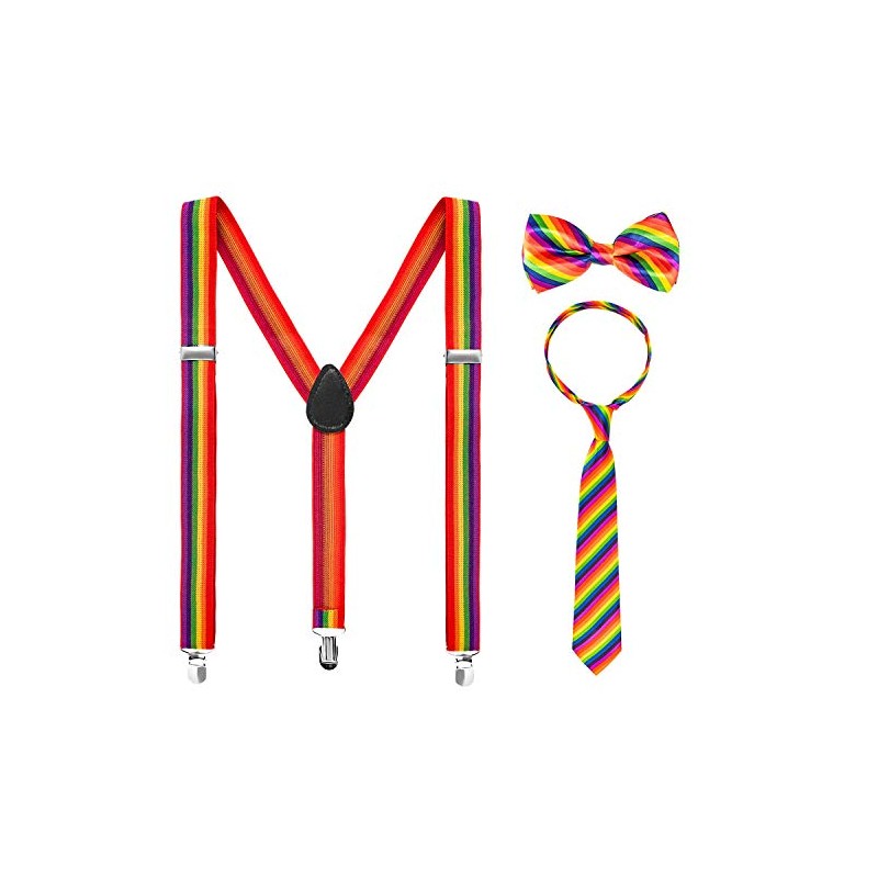 3 Piece Rainbow Gay Pride Costume Set Include Suspenders, Bowtie and Necktie, Adjustable X Back Elastic Suspenders Unisex Rainbow Party Accessory