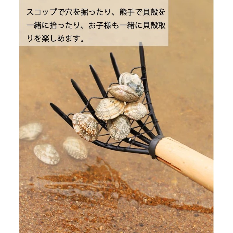3-piece Set, Clam Hunting, Scoop, Net, Shell Digging, Shellfish Pickup, 5.1 inches (13 cm) Wide, 5 Prong Rake, Folding Bucket