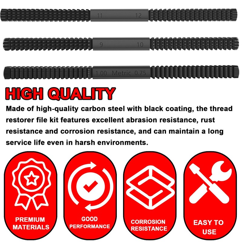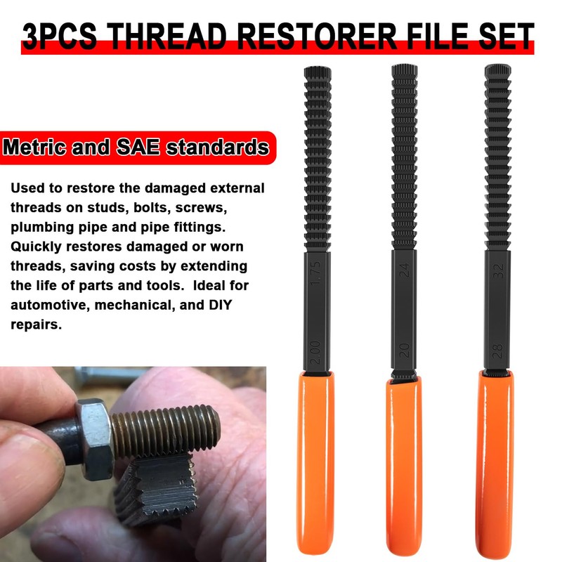 3-Piece Thread Restorer File Set with Both Metric and SAE Standards,Thread Repair File DIY Tools