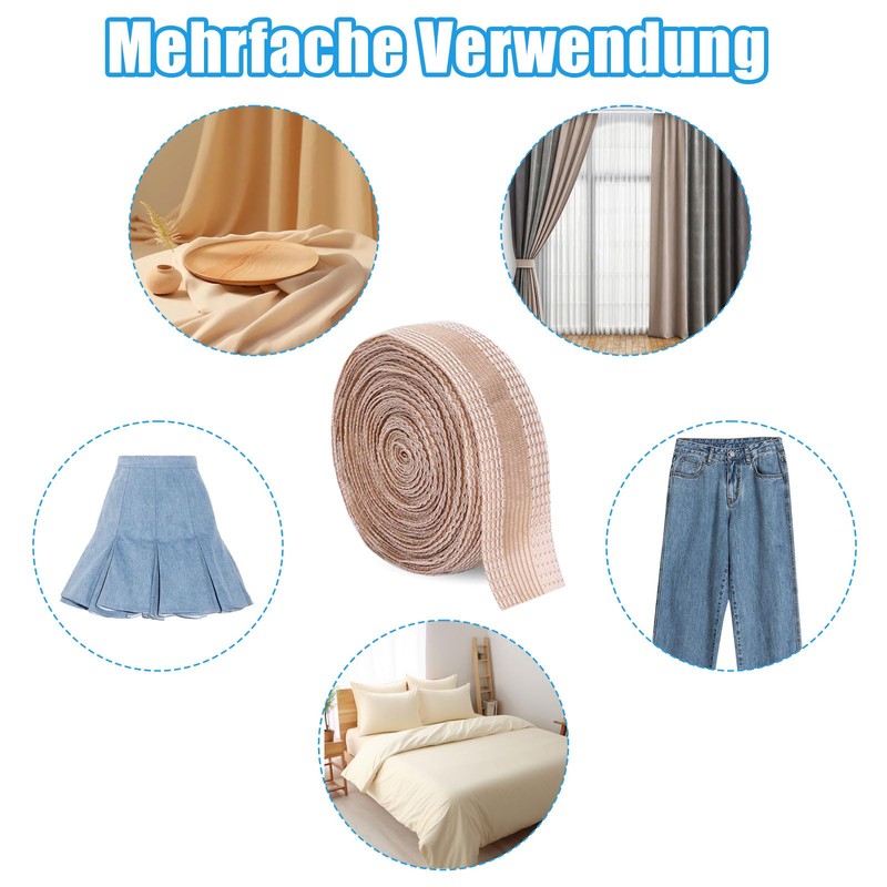 • WIDE APPLICATION Whether you want to shorten trousers, skirts or curtains, the iron hem tape in this set is ideal for different types of fabric. With sewing and ironing tape for shortening trousers, the set is perfect for any sewing or DIY project.