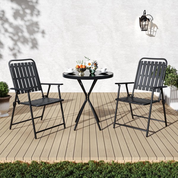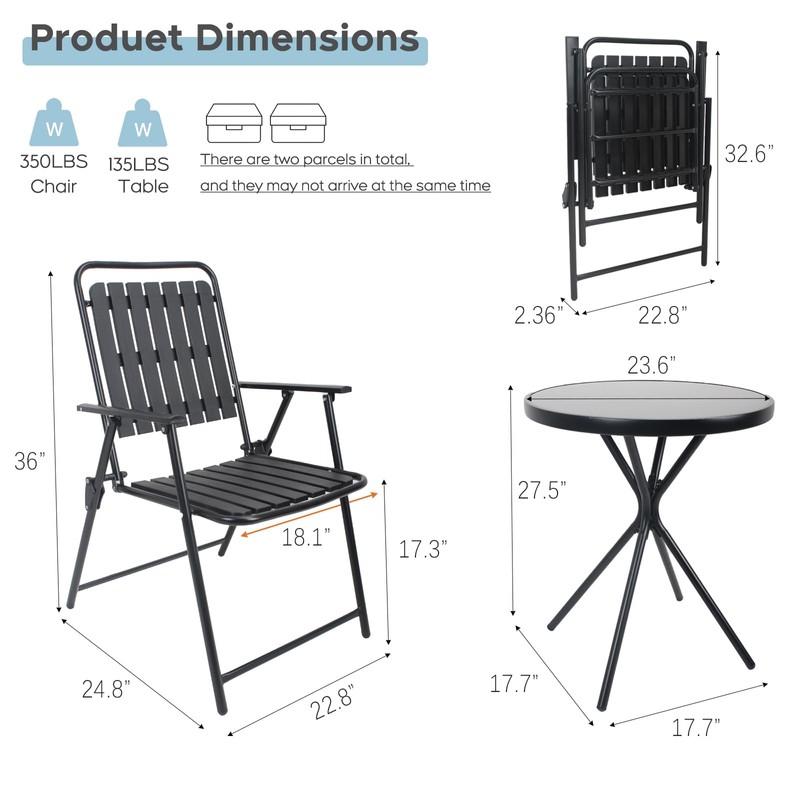 - 【Portable Table Chairs Set】These folding bistro chairs are super easy to transport and store. Easily fit them into a tight corner at home or slide them into your car's trunk – they're designed to save space wherever you keep them