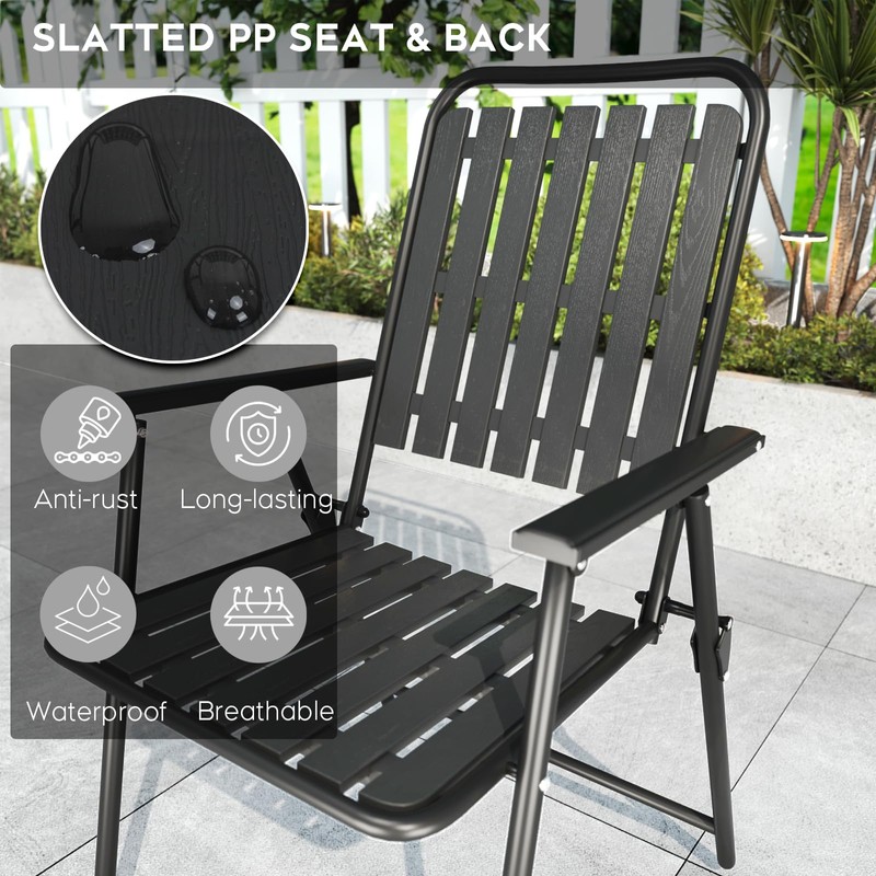 - 【Waterproof & Breathable & Anti-rust】Our patio sets feature Slatted PP Seat & Back and metal frame, Compared to other all-iron seats and backrests, it can achieve rust resistance. With Elegant Black Glass Round Table, easy to clean, powder coated steel frame for scratch resistance