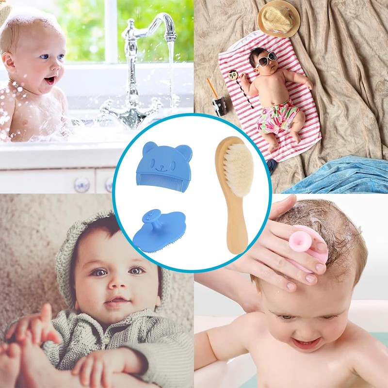 - 【contenido del producto】 : obtendrá 3 piezas de Cepillo Para bebé, que contiene un peine de oso azul, un Cepillo de oso Para lavar el cabello, y un Cepillo de lana (con mango de madera) que puede ser Para su hijo en el baño es traer comodidad