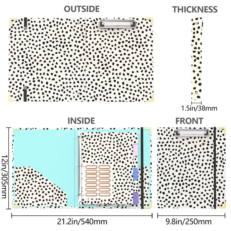 - 【High Quality Materials】Sturdy binder made of high-quality cardboard material, more safe and environmentally-friendly, with full color printing and gloss lamination. Durable metal reinforced rounded edges are both aesthetically pleasing and effective against wear and tear. Strong metal low profile clip holds up letter-size paper, as a writing surface.