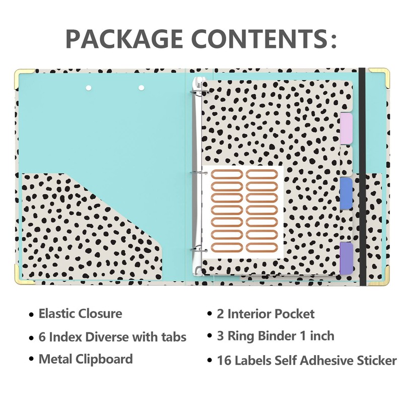 - 【Multifunction Organizer】Binder comes with 6 index dividers with tabs, plus 16 file folder labels self adhesive stickers for organized use. Detachable Customizable Lable, for quick and efficient binder finding. The elastic closure secures the pages inside binder and can be used as a bookmark. Features two interior pocket to store letter size papers and important loose documents.