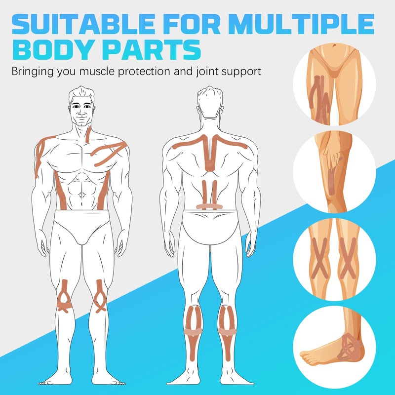 - 【Easy to Cut】The kinesiology tape can be cut to the desired size. Different sizes also fit different body parts, such as shoulders, arms, fingers, knees, calves, ankles, soles, etc. It is recommended to round the edges when cutting to prevent warping.