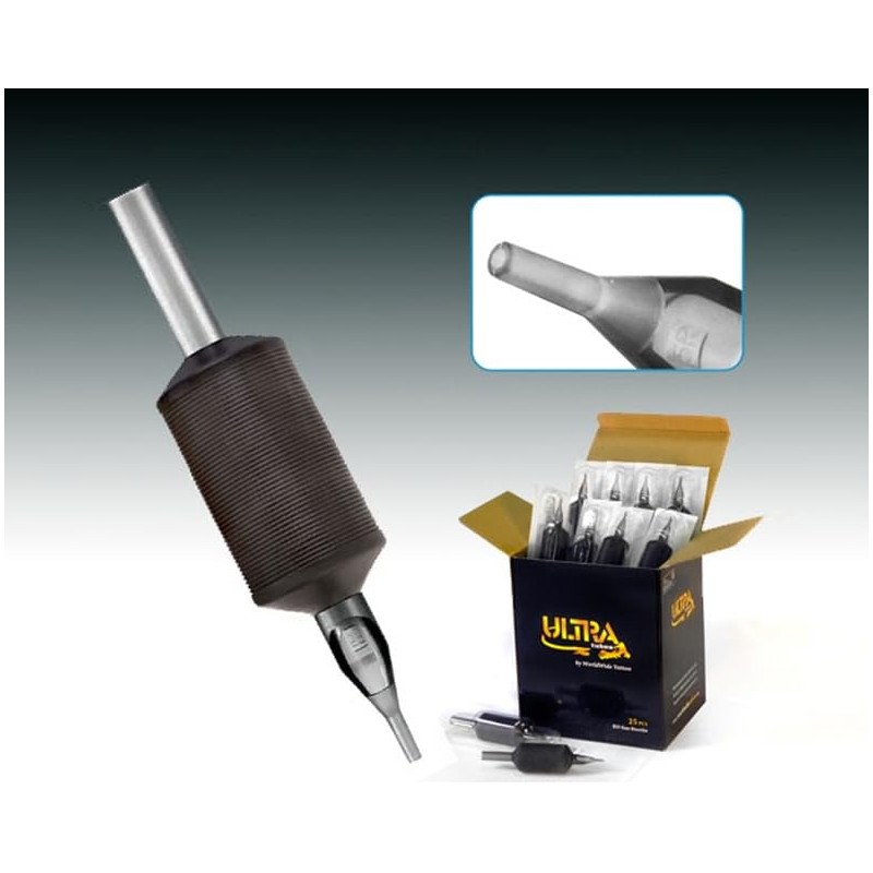 Qty-25pcs of 3 ROUND "1 1/4" Inch Ultra Disposable Tube. The picture is Generic and show the 3 Grips sizes we have and 3 Different Tip Types. You will get the Grip Size and Tip Size listed only.