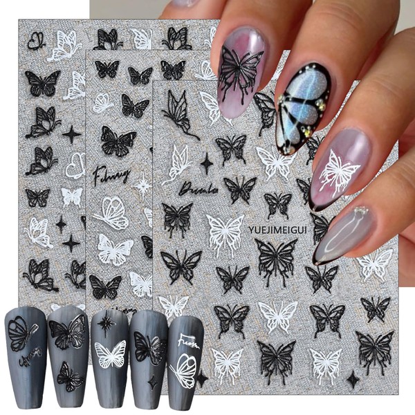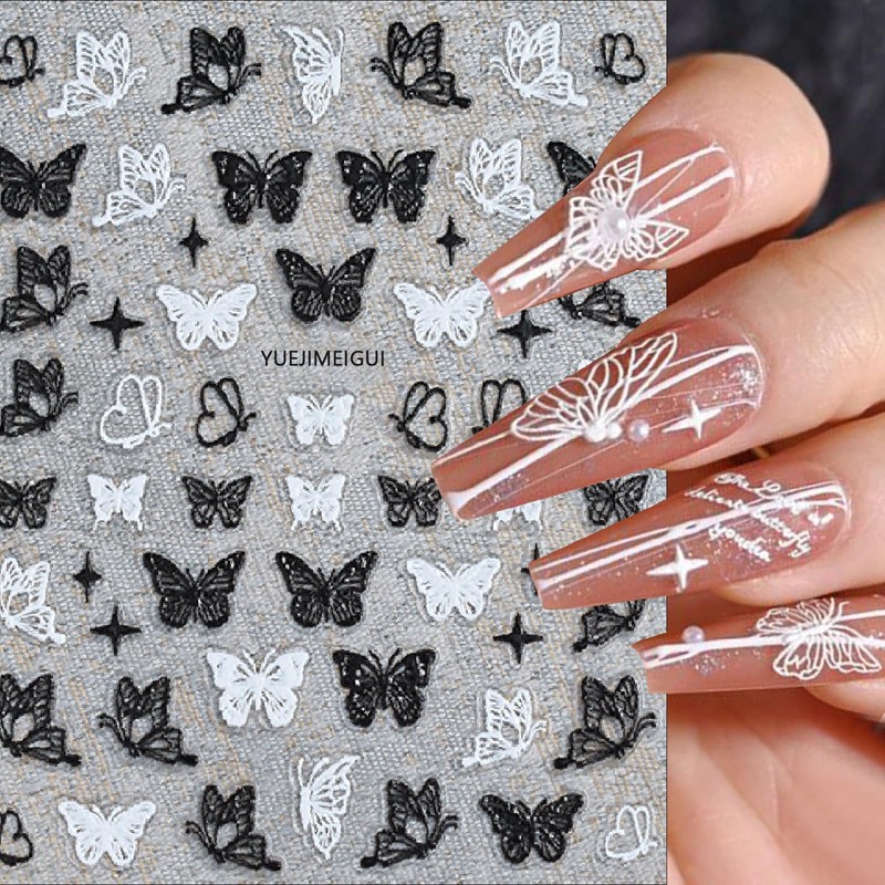 - Butterfly Nail Stickers- You will get 3 sheets hollow butterfly nail art stickers for acrylic nails supply, many pattern for you to choose, black and white butterflies nail designs, and satisfy your rich imagination of nail DIY