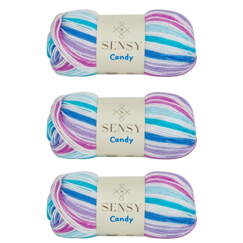 3 Skeins of Sensy Candy Yarn, 3.5 oz, 251 Yards, Multicoloured Yarn for Crocheting and Knitting, Craft Yarn, Gauge 3 Light (5433)