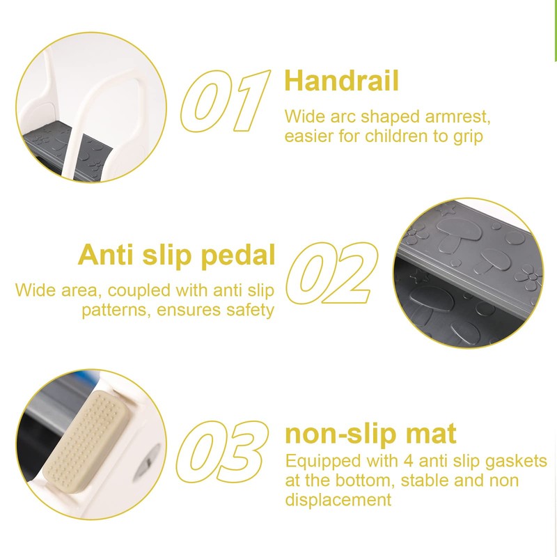 3-Step Stool with Handrails for Toddler and Kids, Standing Learning Tower for Bathroom Sink, Potty Training, Children Step Up Learning Helper with Handles and Safety Non-Slip Pads(Gray)