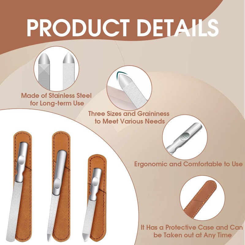 - Das Nagelfeilen Set ist die ideale Wahl für diejenigen, die eine effektive und zuverlässige Lösung für ihre Nagelpflege suchen. Mit 3 Edelstahl Nagelfeilen, die speziell für Naturnägel, Fußnägel und Acrylnägel entwickelt wurden, können Sie Ihre Nägel präzise feilen und die perfekte Form erreichen.