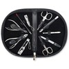 - CONTENTS: Nail scissors, cuticle scissors, nail nippers, cuticle nippers, finger nail clipper, toe nail clipper, sapphire nail file, cuticle remover, double instrument (pusher/cleaner), tweezers.
