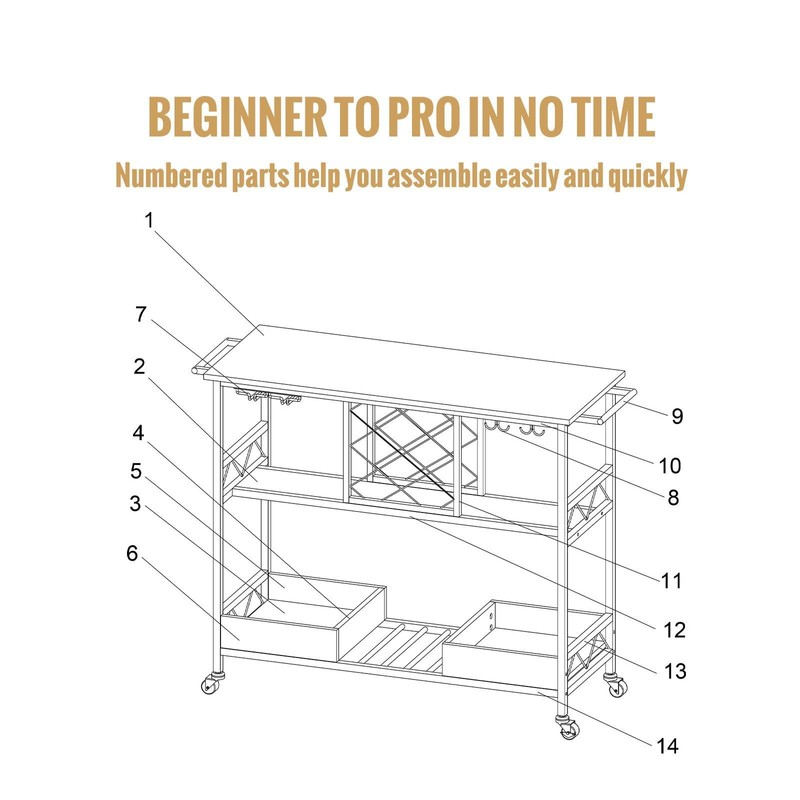 - 5.Carefree Assembly: The liquor cart provides all necessary accessories and detailed instructions. It comes with unified screws and clear and brief instructions. All parts are provided with labeled numbers, and each assembly step is listed clearly. You can easily understand the assembly process, wasting little time and energy. Start preparing your favorite wines and dishes!