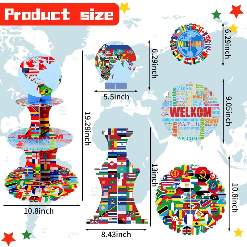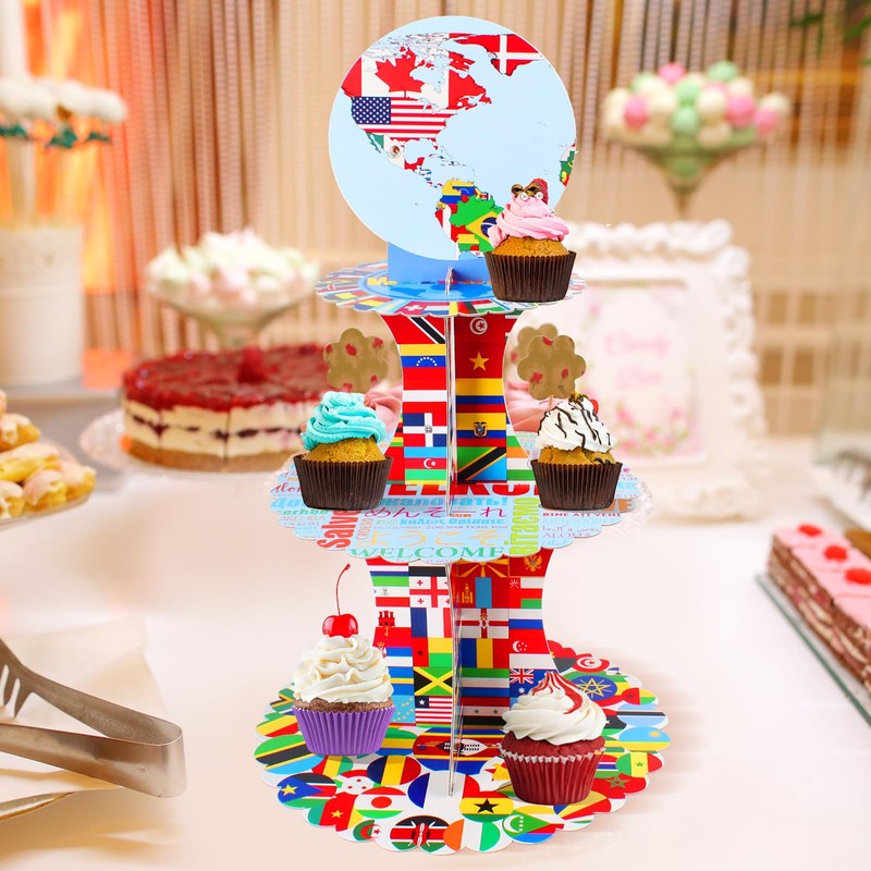 - 【Eye-Catching Design】 This cupcake holder features flags of various countries around the world as its theme, including flag patterns from over 100 countries worldwide. Whether it's a lively party, a festive bar atmosphere, a sports club gathering, a school festival, or any other celebration, our desert stand will seamlessly blend with the theme, creating a joyful and festive
