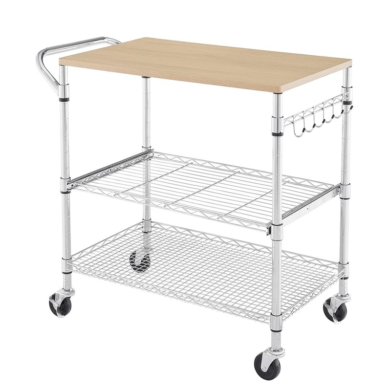 Sturdy Construction: This rolling utility cart is constructed from industrial-strength metal, thicker wooden top , equipped with 1 inch diameter poles and industrial wheels can hold up to 450lbs on wheels.