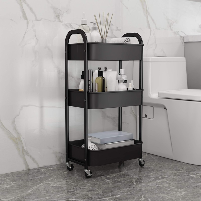 3-Tier Rolling Utility Cart with Caster Wheels,Easy Assembly, for Kitchen, Bathroom (Black)