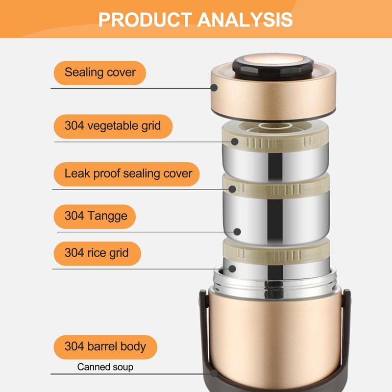 Built with 3 separately sealed container and 1 outer jar, large capacity enables you to pack various food for work, picnic or camping.You can bring hot food, such as fried rice, soup, pasta, together with cold food, such as salad, fruit, veggies or even nuts.