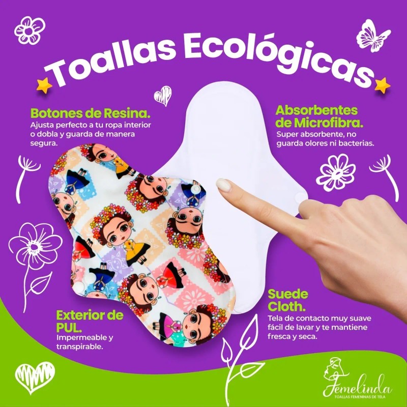 3 Toallas Ecologicas Tamaño Regular Ideal Para Uso Diario