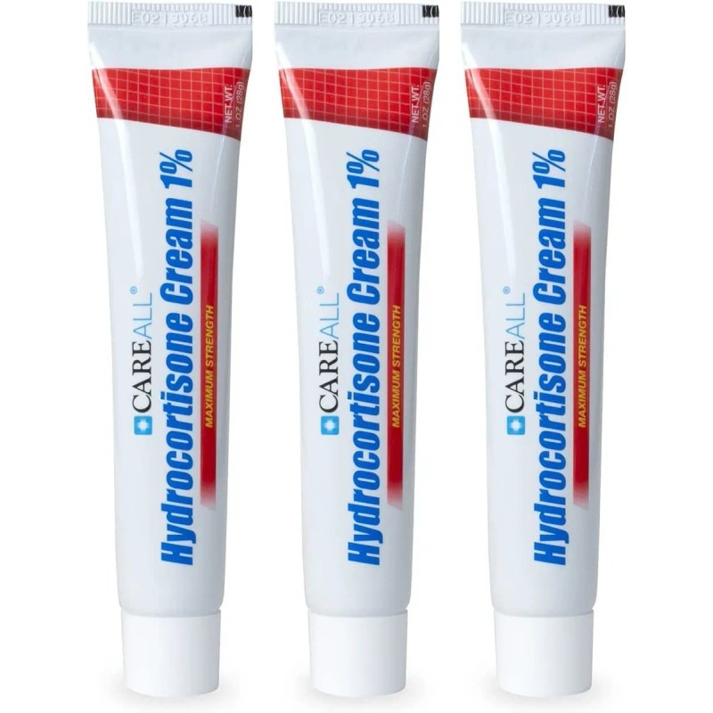 Pack con 3 tubos de crema Careall al 1% de hidrocortisona (1 oz c/u). Alivio eficaz para picazón, enrojecimiento e irritación por eccema, dermatitis o picaduras.