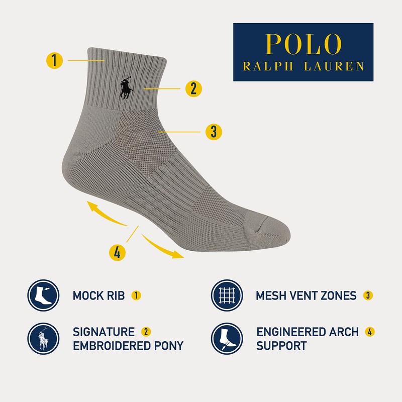 ポロラルフローレン テックアスレチック クォーター 3パック ロゴ刺繍入り US サイズ: One Size カラー: ホワイト