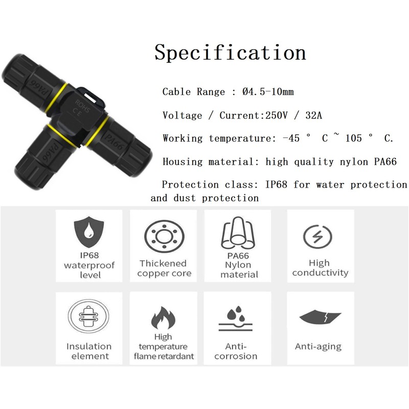 - ✔ Excellent material : The connector made of PA66 material, Resistance to high temperature and low temperature, V-0 flame retardant, working temperature: -40°C~105°C, CE ROSH certified.