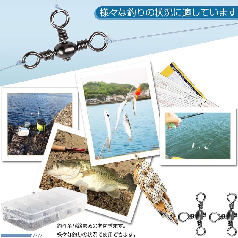 - Set includes: 50 pieces triple fishing swivels; 5 sizes: 10 pieces 2# 10 pieces 4# 10 pieces 6# 10 pieces 8# 10 pieces 10# 10 pieces ; meet your various fishing needs. Comes with a storage box, easy to store and carry. Material: Carbon Steel; Wide range of usage, suitable for freshwater, saltwater, bait fishing set etc