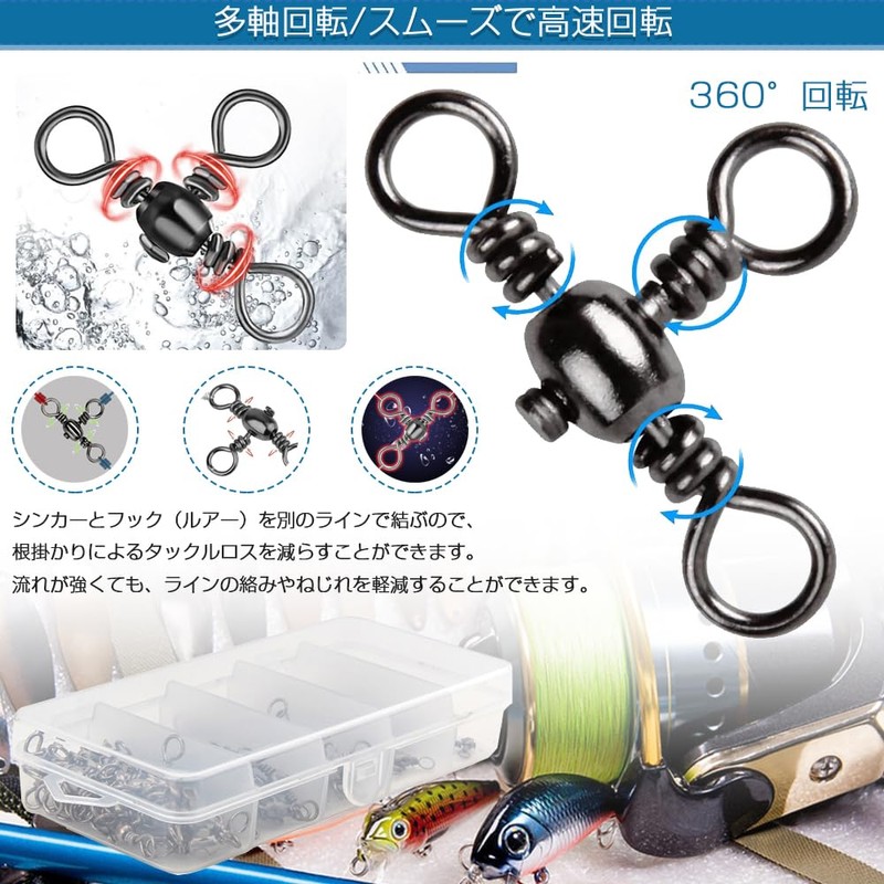 - All rings of 3-way fishing swivels can rotate smoothly. 3-way fishing swivels can reduce line tangles and twists even with high water flow. No matter what kind of lure