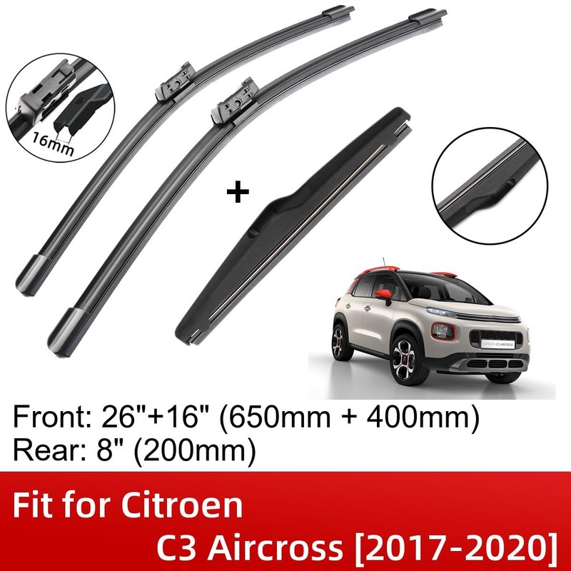 3 Wipers 26" 16" 8" Front And Rear Replacement Fit for Citroen C3 Aircross 2017-2020, Windshield Wiper Blades Original Equipment Wiper Blade, That Meet OEM Quality Easy DIY Install Premium All-Season
