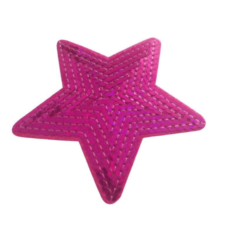 - Sequin glitter star patches in pink/pink colour shades: three pieces each 9 cm diameter for ironing on clothing or accessories.