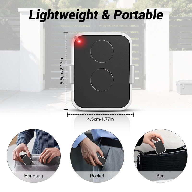 • Simplified programming: no technical skills required, this garage door remote is programmed by receiving the code of the transmitter, rolling code..Clear instructions are included for quick configuration, even for beginners (not compatible with secure co-property systems)