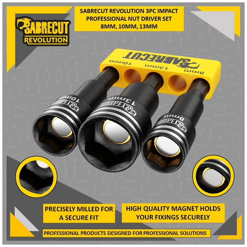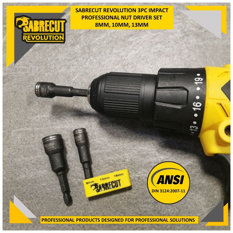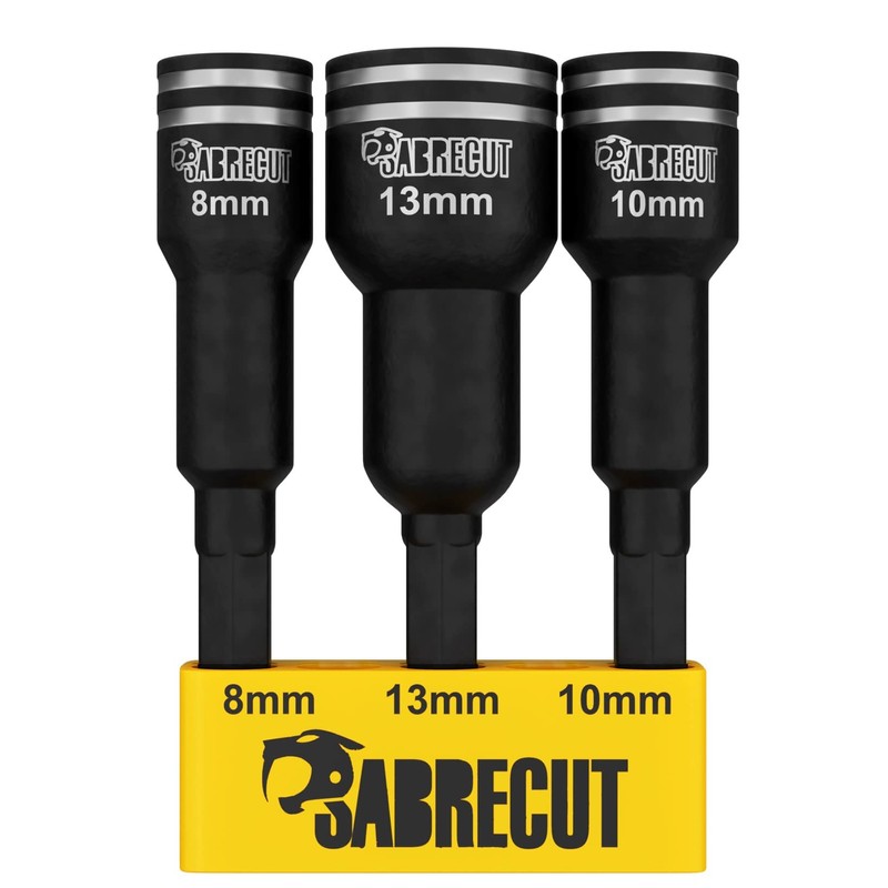 3 x SabreCut SCENDK1 Nut Socket Driver Set HEX to 8mm 10mm 13mm Nut Socket for Impact Drill Drivers