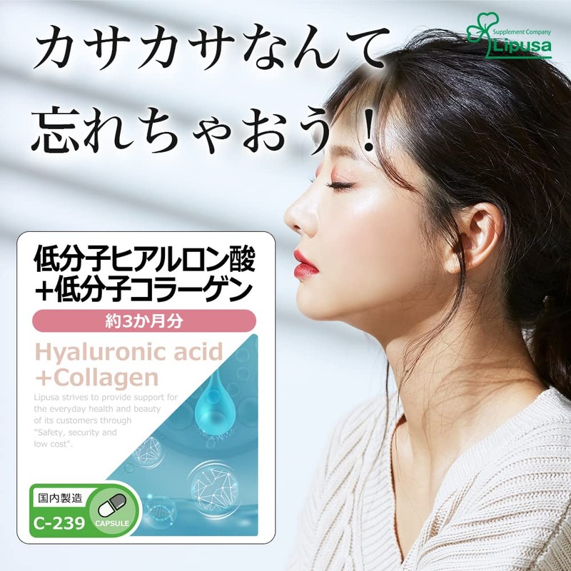 【リプサ公式】 低分子ヒアルロン酸+低分子コラーゲン 約3か月分×2袋 C-239-2 ビタミンC