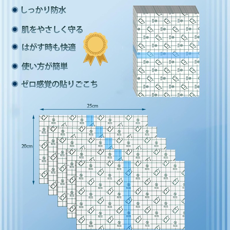 - 【製品仕様】幅×長さ:20cm×25cm、内容量:30枚、色:透明、材質:ポリウレタンフィルム、アクリルゲル、フィルム厚:0.022ミリ。防水性・透湿性に優れ、皮膚へのストレスを軽減します。
