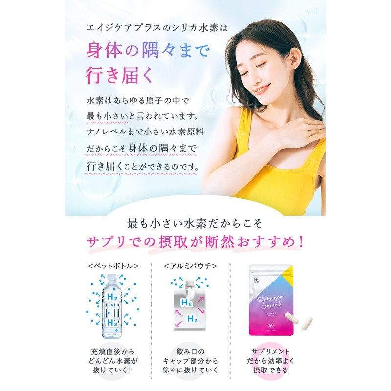 - ✅【身体の隅々まで行き届くシリカ水素サプリ】 水素はあらゆる原子の中で最も小さいと言われています。ナノレベルまで小さい水素原料だからこそ身体の隅々まで行き届くことができるのです。最も小さい水素だからこそサプリでの摂取が断然おすすめ!