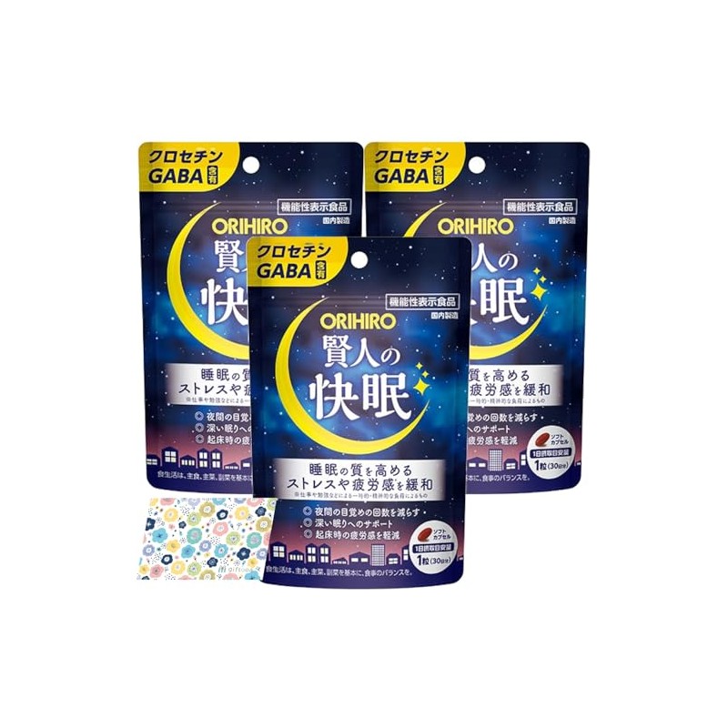 【3個セット】賢人の快眠 30粒 30日分 ×3袋 GABA 睡眠の質を高める 中途覚醒回数を減らす 起床時の疲労感を和らげる 睡眠の質を高める ストレスや疲労感を緩和する 機能性表示食品 オリヒロ