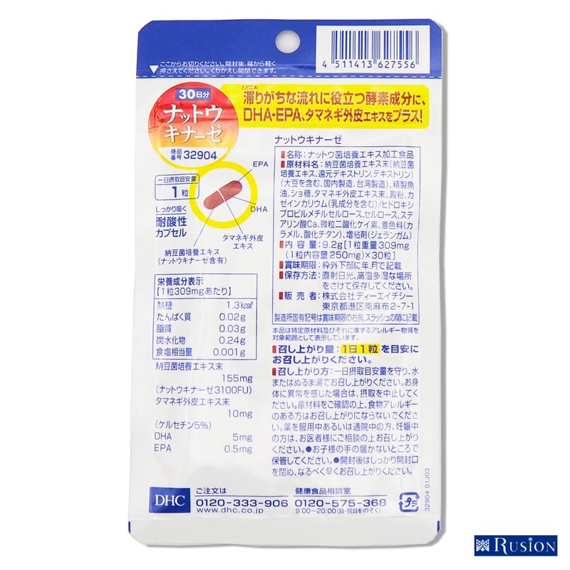 - DHCの『ナットウキナーゼ』は、この[ナットウキナーゼ]3,100FU(※)に加え、サラサラに役立つ[DHA][EPA][国産タマネギ外皮エキス]をプラスして、健康維持にはたらく力を高めました。生活習慣対策や、毎日の健康管理にどうぞ。